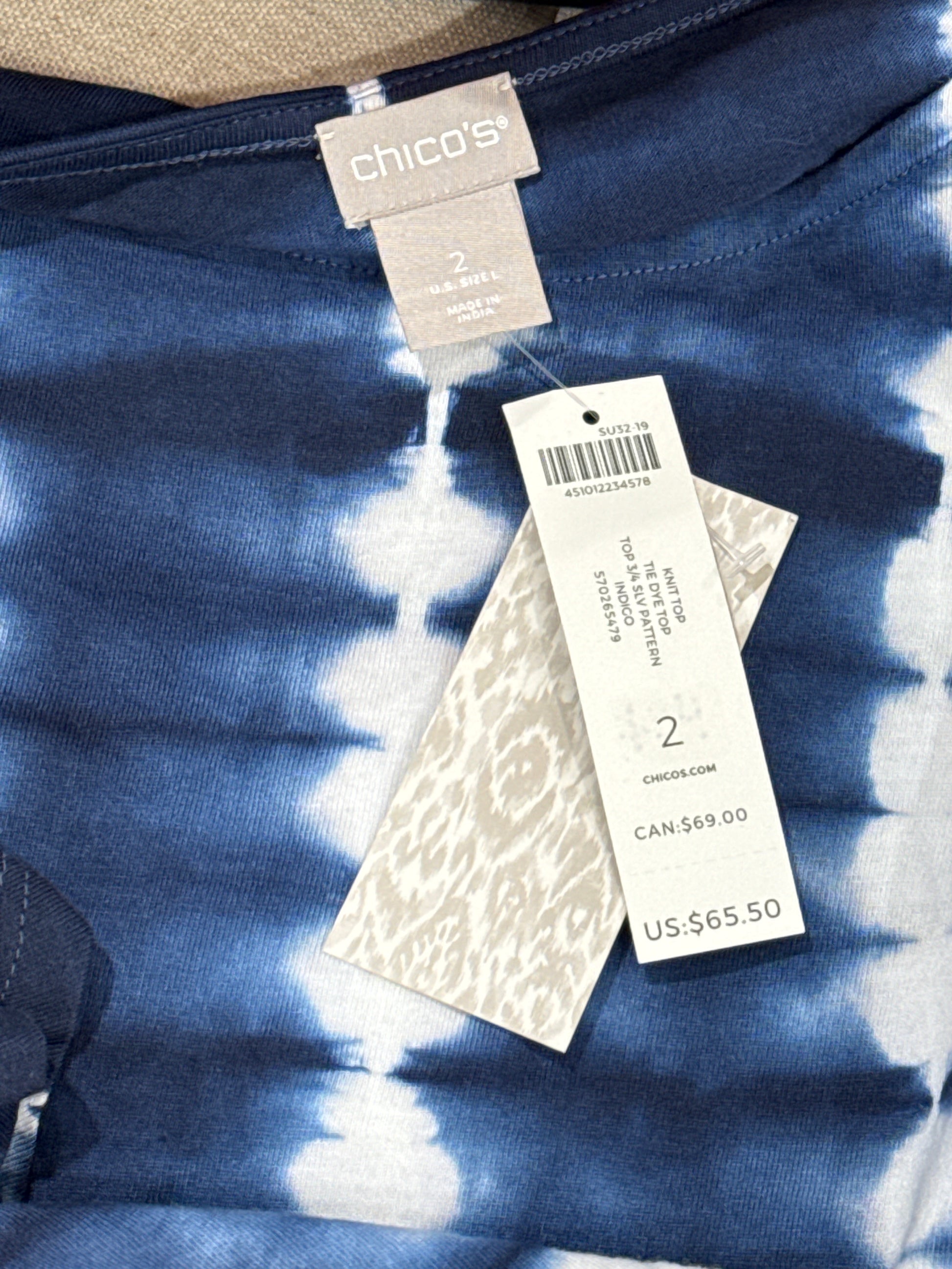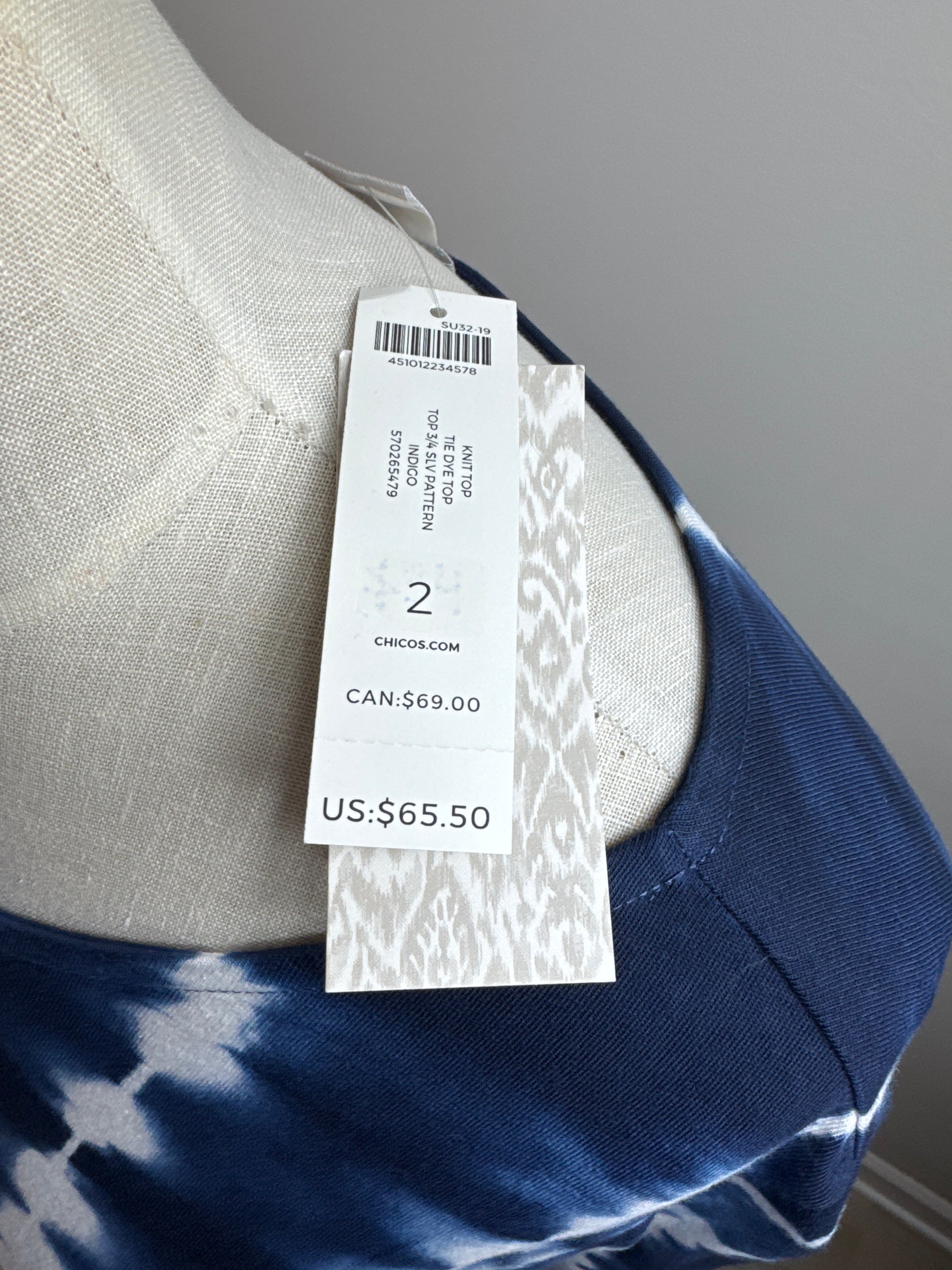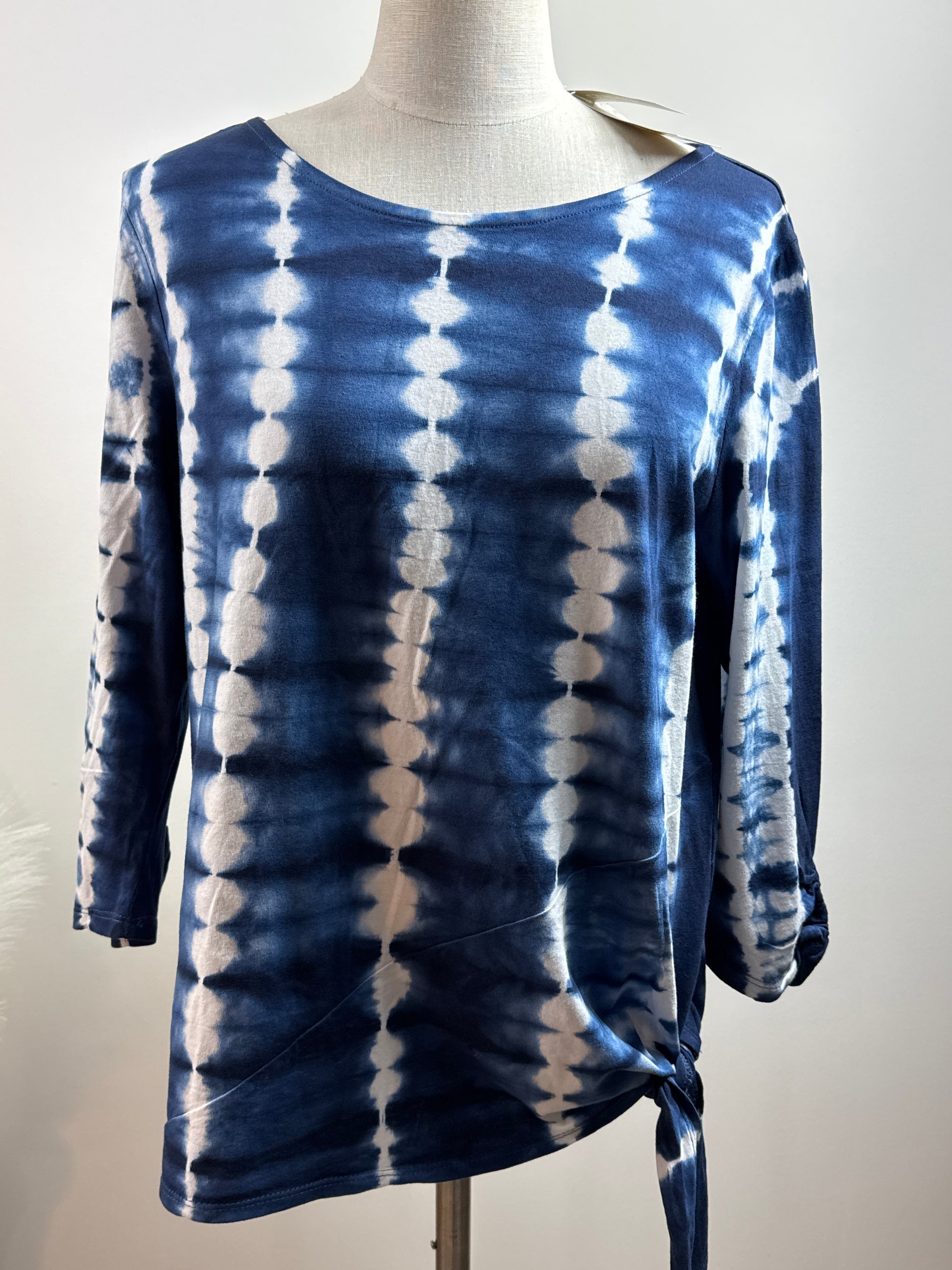 NWT Size 2 Knit Top Tie Dye Top 3/4 Sleeve Indigo
