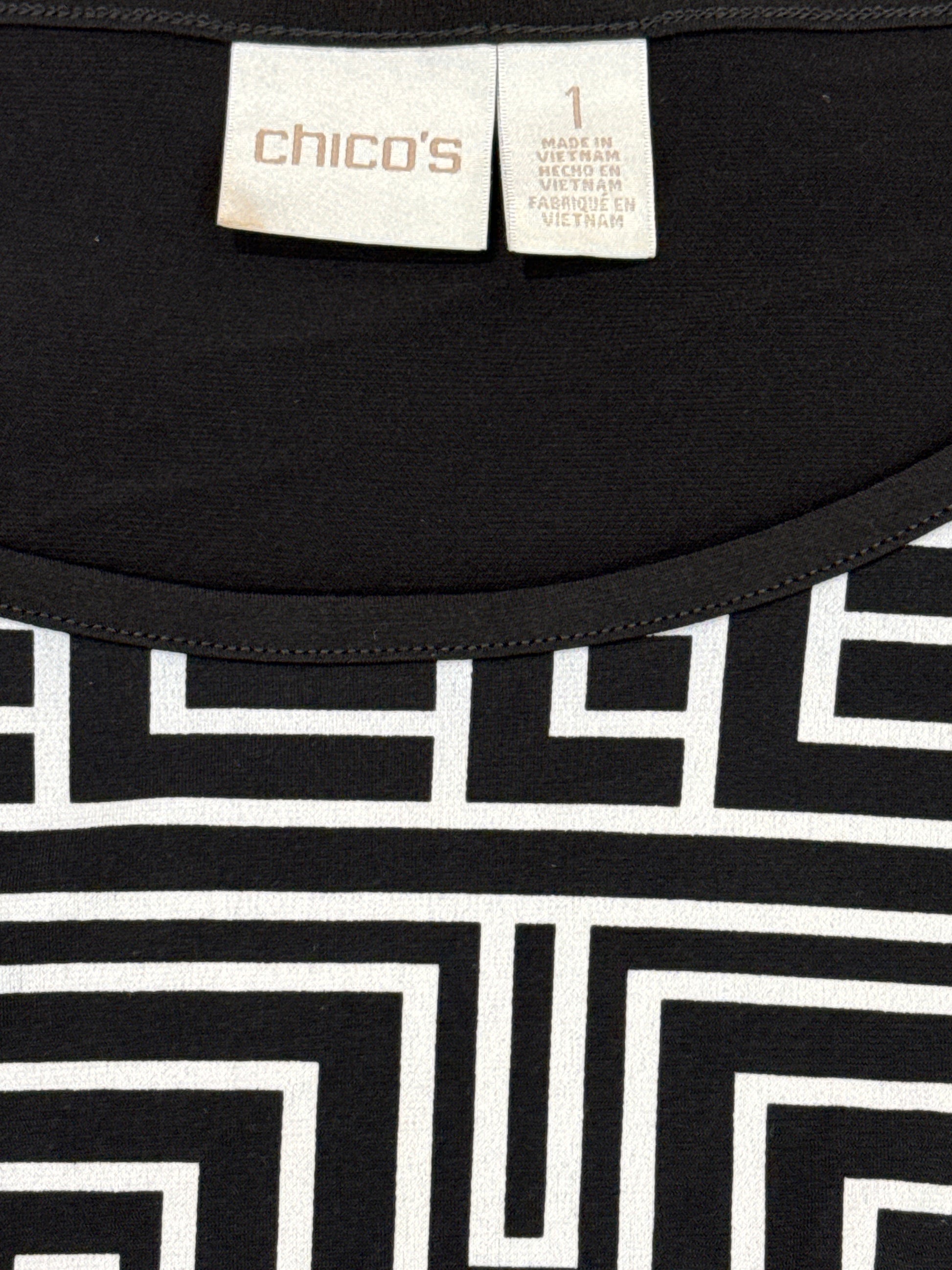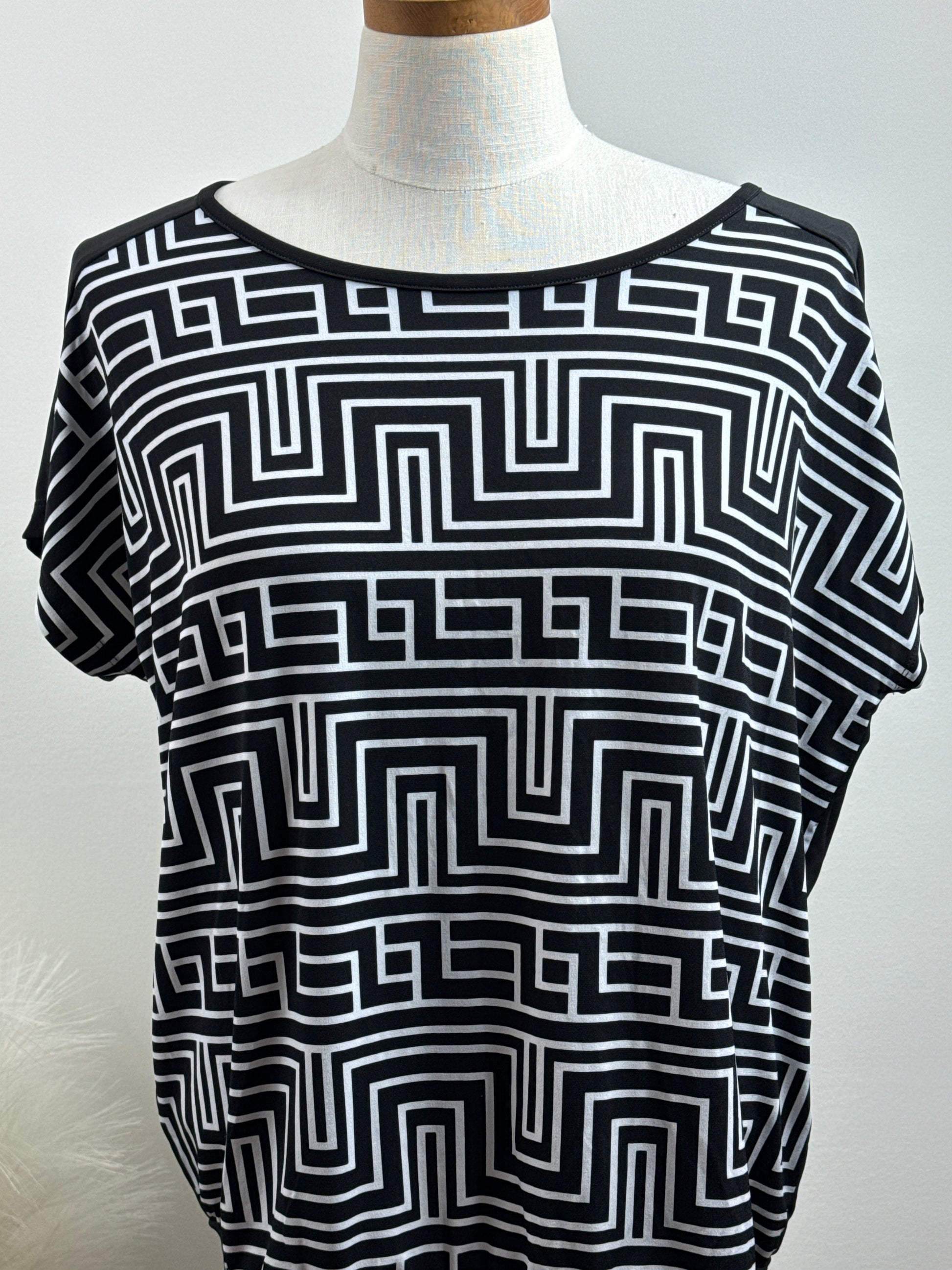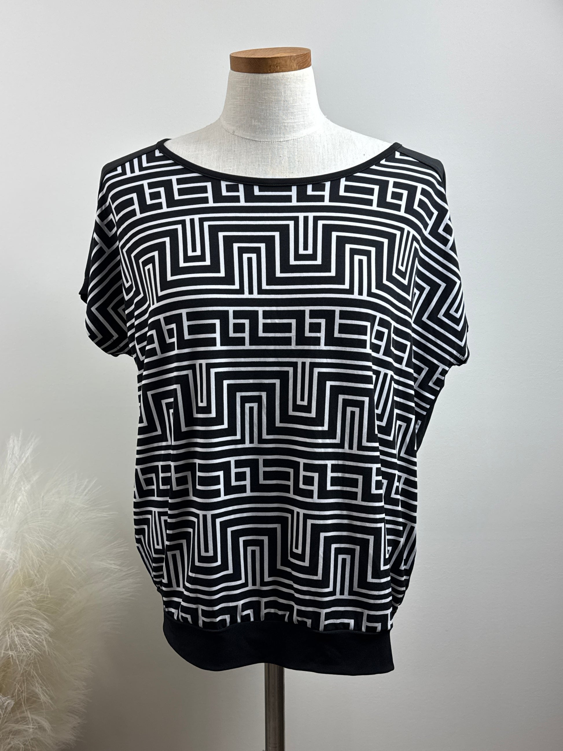 Size 2 Super Soft Short Sleeve Pull over Blouse in Black & White. Elastic wide band at waist. Can easily be dressed up or down.