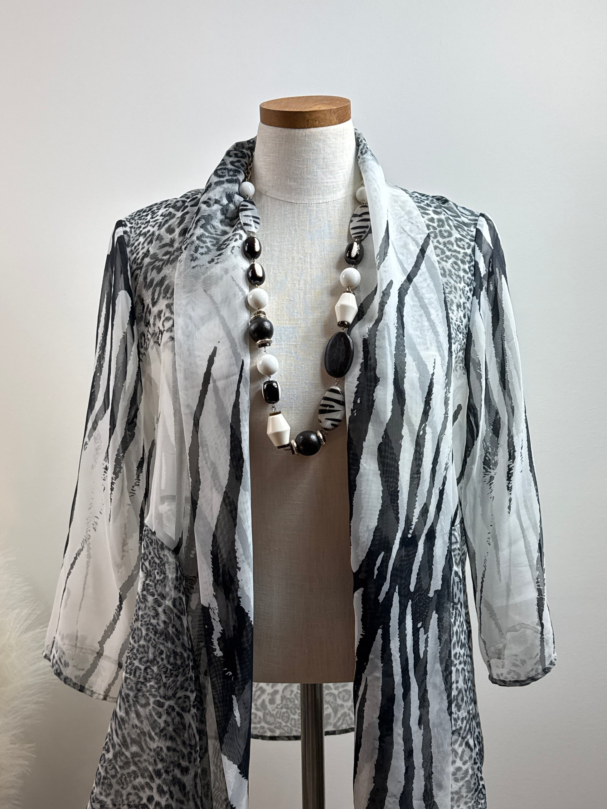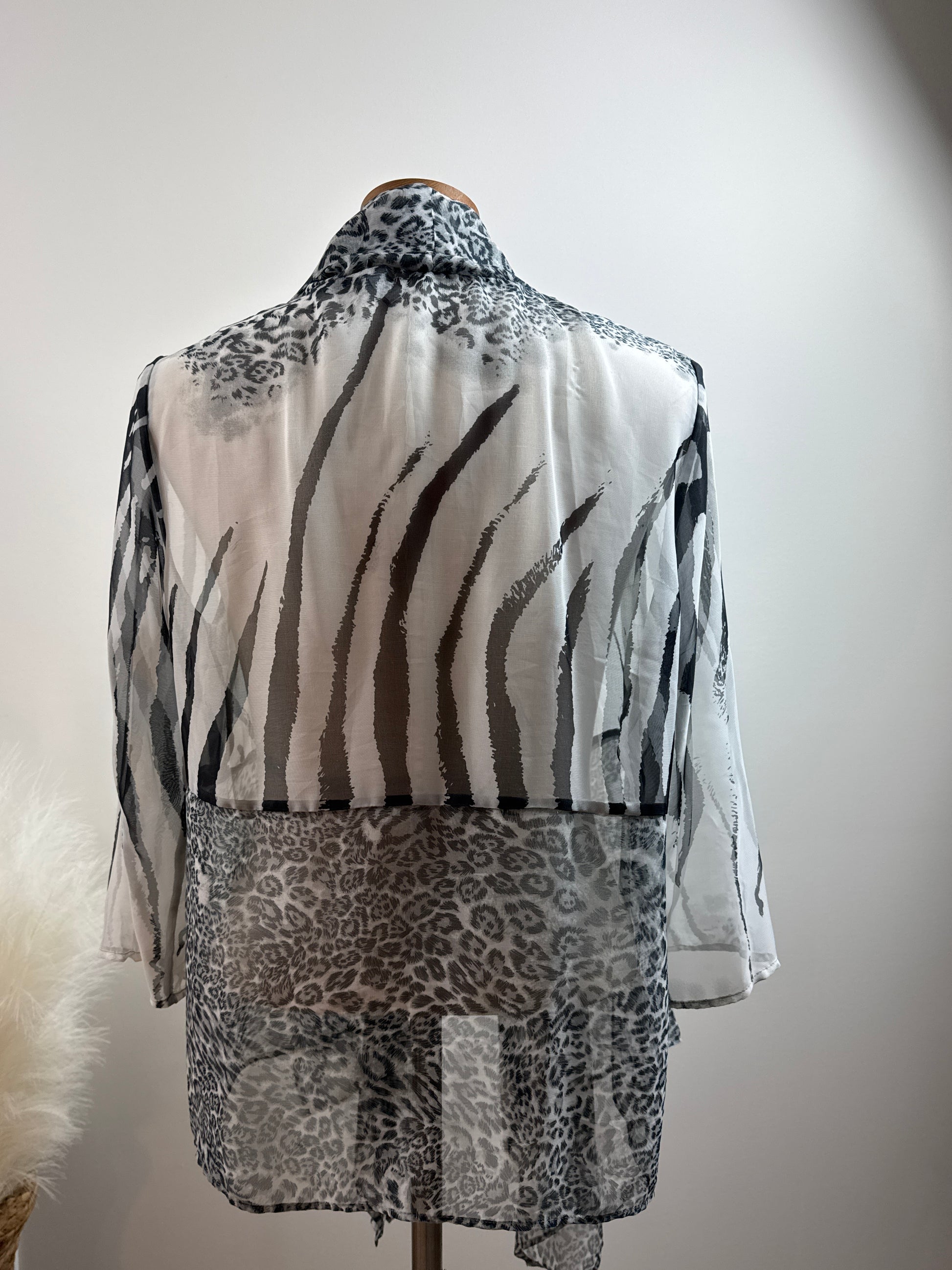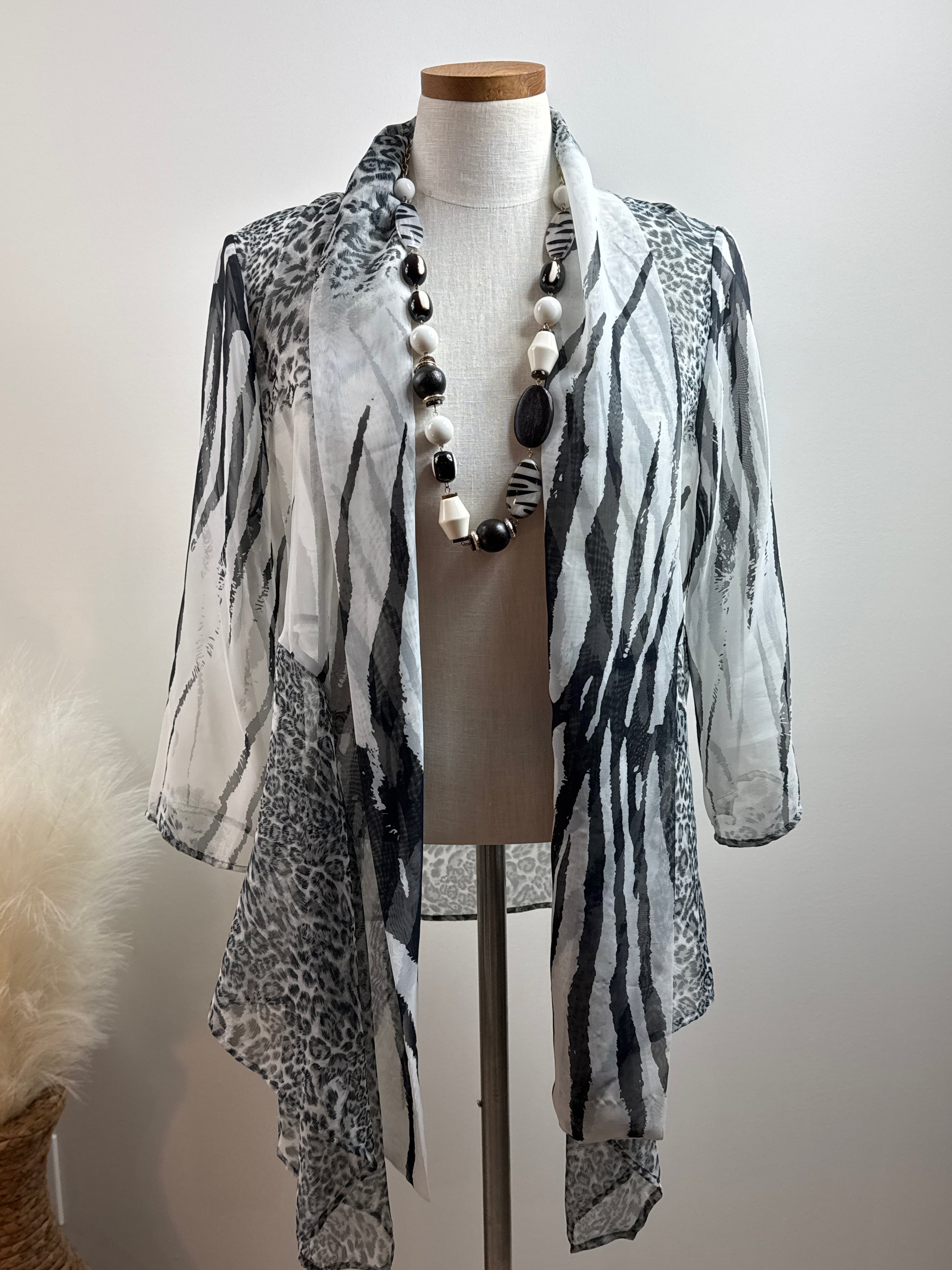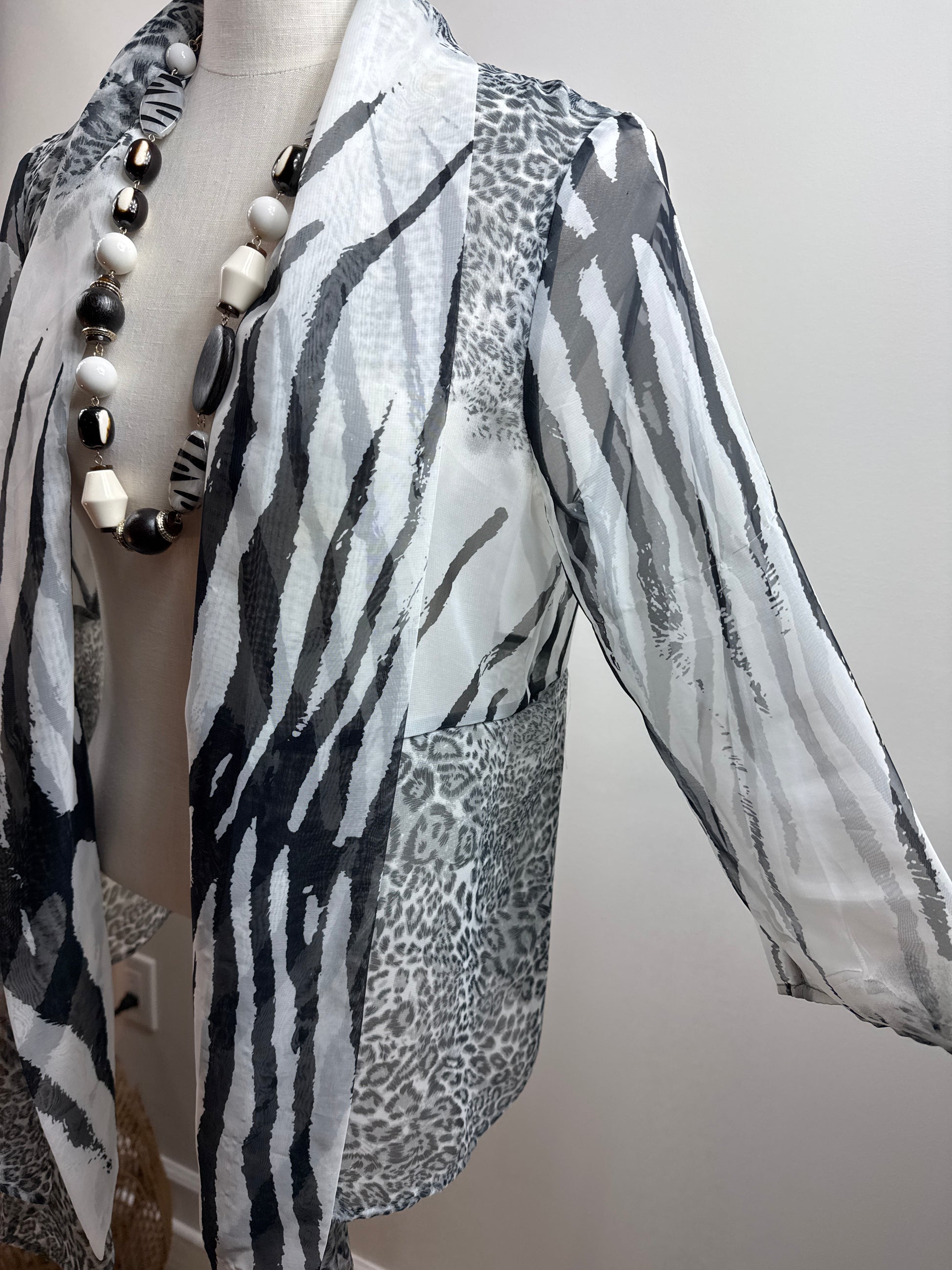Size 2 Sheer Open Cardigan Black & White Animal Print