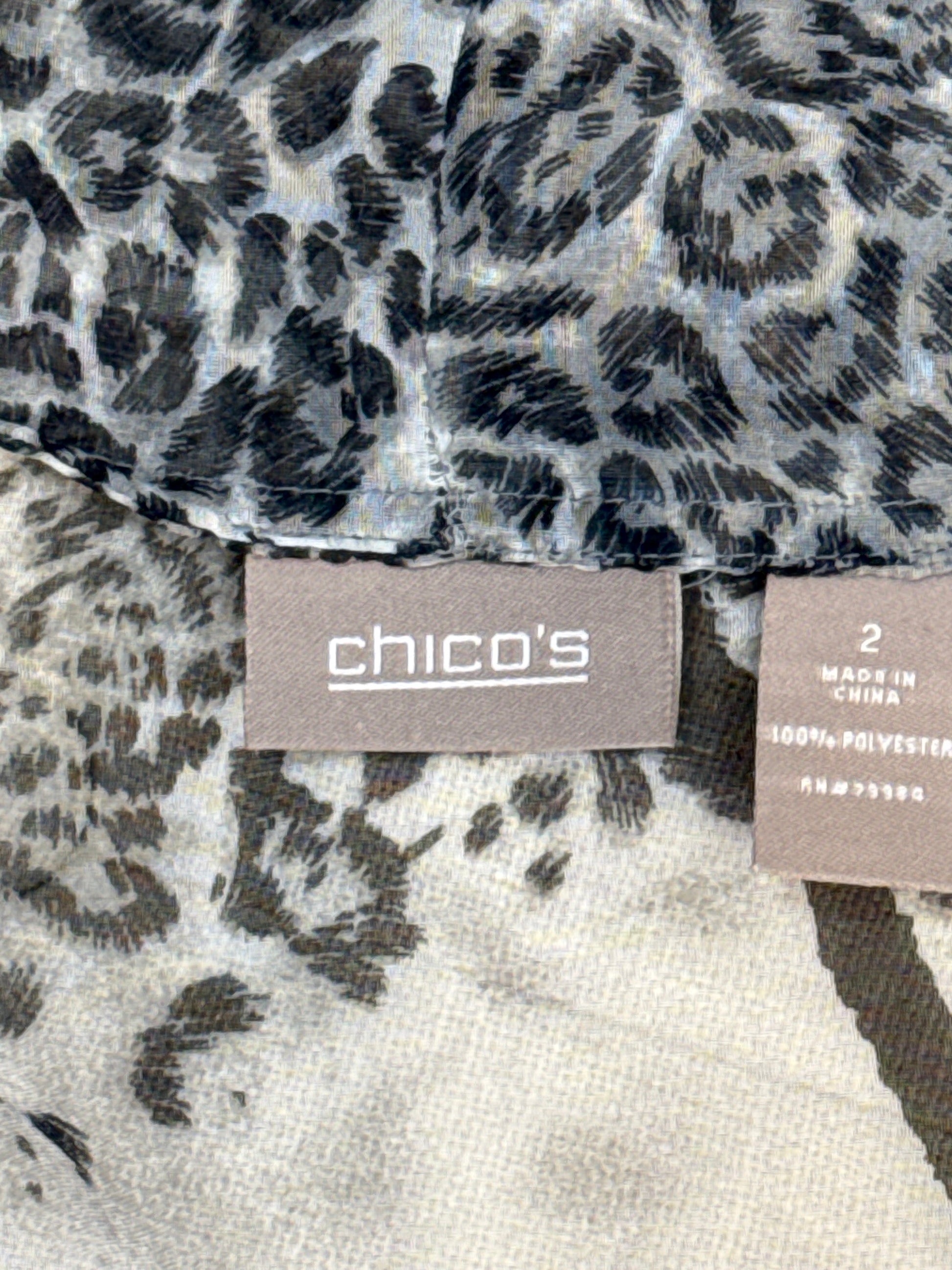Size 2 Black & White Sheet Animal Print open Cardigan. 3/4 length sleeves, P2P approx 21”, front length 34” to the longest point, rear length 26”. 100% polyester