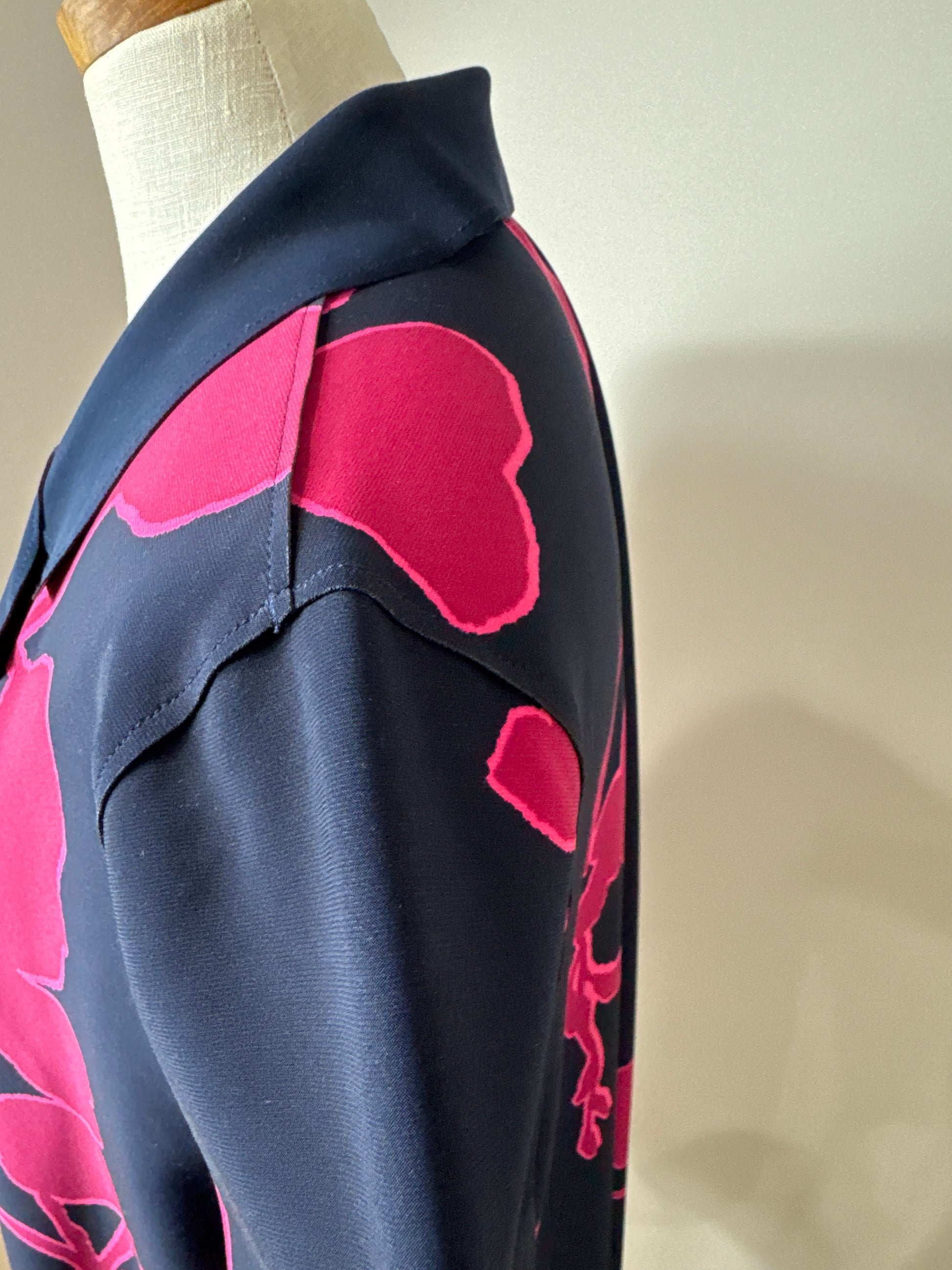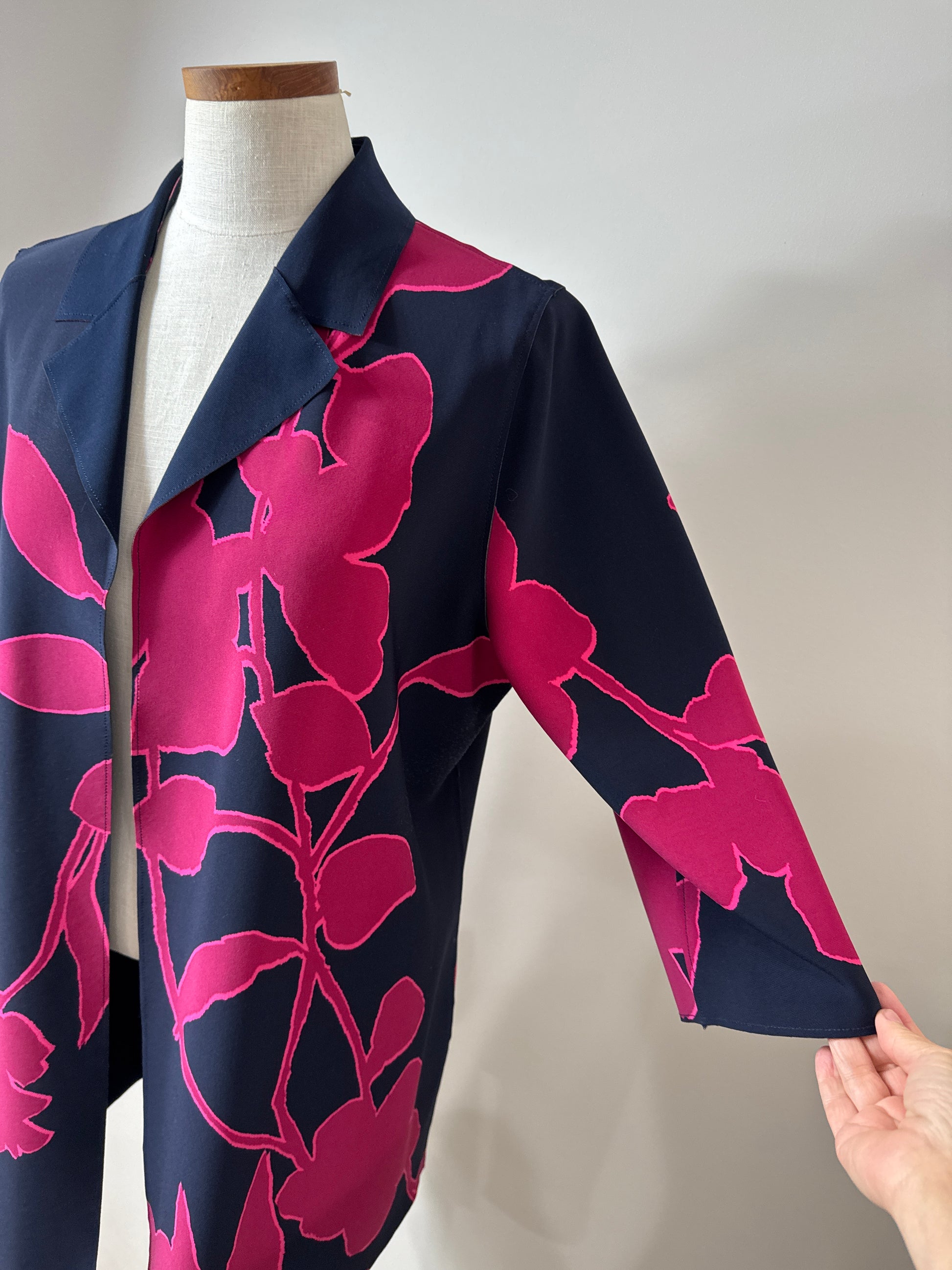 New without tags Navy and Fuscia Pink 3/4 Travelers Jacket with 3/4 sleeves. Stunning jacket can be dressed up or down. P2P 23”, Length from shoulder to bottom front 32”. 95% Polyester and 5% Spandex